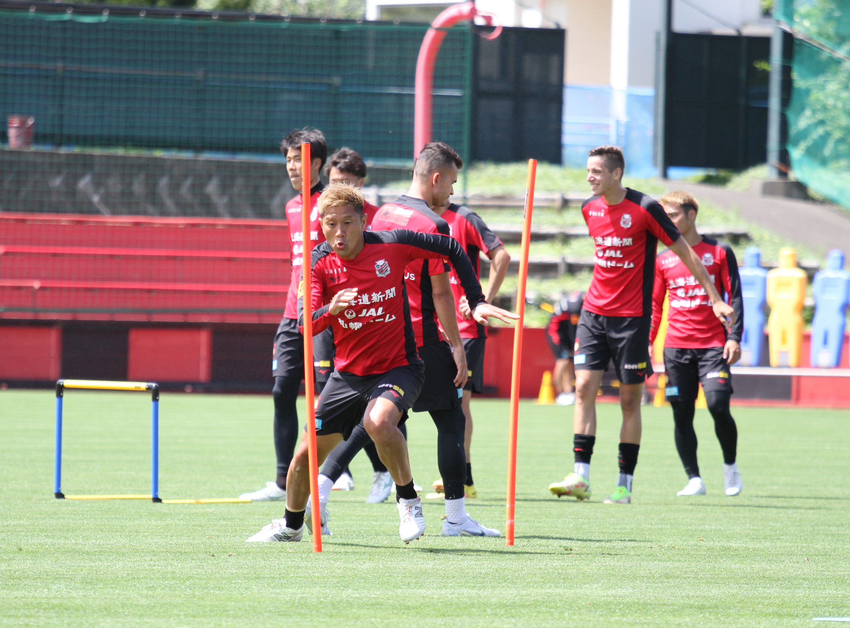 おはようございます。 朝刊コンサ記事からです。 ◆見出し ★<FW小柏速攻で今季初得点だ><あすH神戸戦><興梠との連係自信「攻撃に厚み」> <前節に戦列復帰><唯一のリーグ戦全先発駒井「体調に問題ない」> ■小柏記事より ・前節湘南戦で復帰した小柏 ・リハビリ中は、瞬発力を高めるウエートトレーニングを中心に実施 小柏 「周りからは速くなったと言われる」 ・と、離脱期間を無駄にせず、ストロングポイントであるスピードに磨きをかけてきた ・後半戦でカギを握るのが興梠との連係だ ・この日行った試合形式の練習は主力組の右シャドーで出場 ・1トップに興梠、左シャドーに駒井が入った 小柏 「裏に抜けやすい。慎三さんにボールがしっかりと収まるので、そこから動き直せる。攻撃の厚みが増す」 ・と、早くも連係に自信を見せた ・次節の神戸戦も下位に甘んじるチームの起爆剤として期待は高まる 小柏 「僕が入ってチームを変える事ができたと証明するためにも連勝、上位進出が必要」 ・と、キッパリ ■駒井記事より ・今季、ここまでチームで唯一、リーグ戦全24試合で先発出場している駒井 ・チーム内では、けが人が続出している中、人一倍タフさを見せている ・チーム最長の1980分間ピッチに立っているが 駒井 「体調、フィジカル面は問題ない」 ・と、心強い ・湘南戦では先制点を奪い、大量得点の口火を切る活躍だ 駒井 「勝利したことによってチームはポジティブになっている」 ・タフマンはピッチを駆け回り、チームに勢いをもたらす などです。