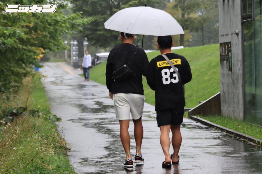 <日刊スポーツ保坂果那>さんが、こんなレポをしました。 ツイートのコピーです。 雨の中、傘を差さず駐車場に向かっていた菅大輝選手に福森晃斗選手が「入るか?」と聞いて傘の中に入れてあげていました。 ほっこり☺️前方に見えるのは濡れながら走っていた藤村怜選手。 添付写真です。 https://pbs.twimg.com/media/FbduAllUIAApwdm?format=jpg&name=900x900