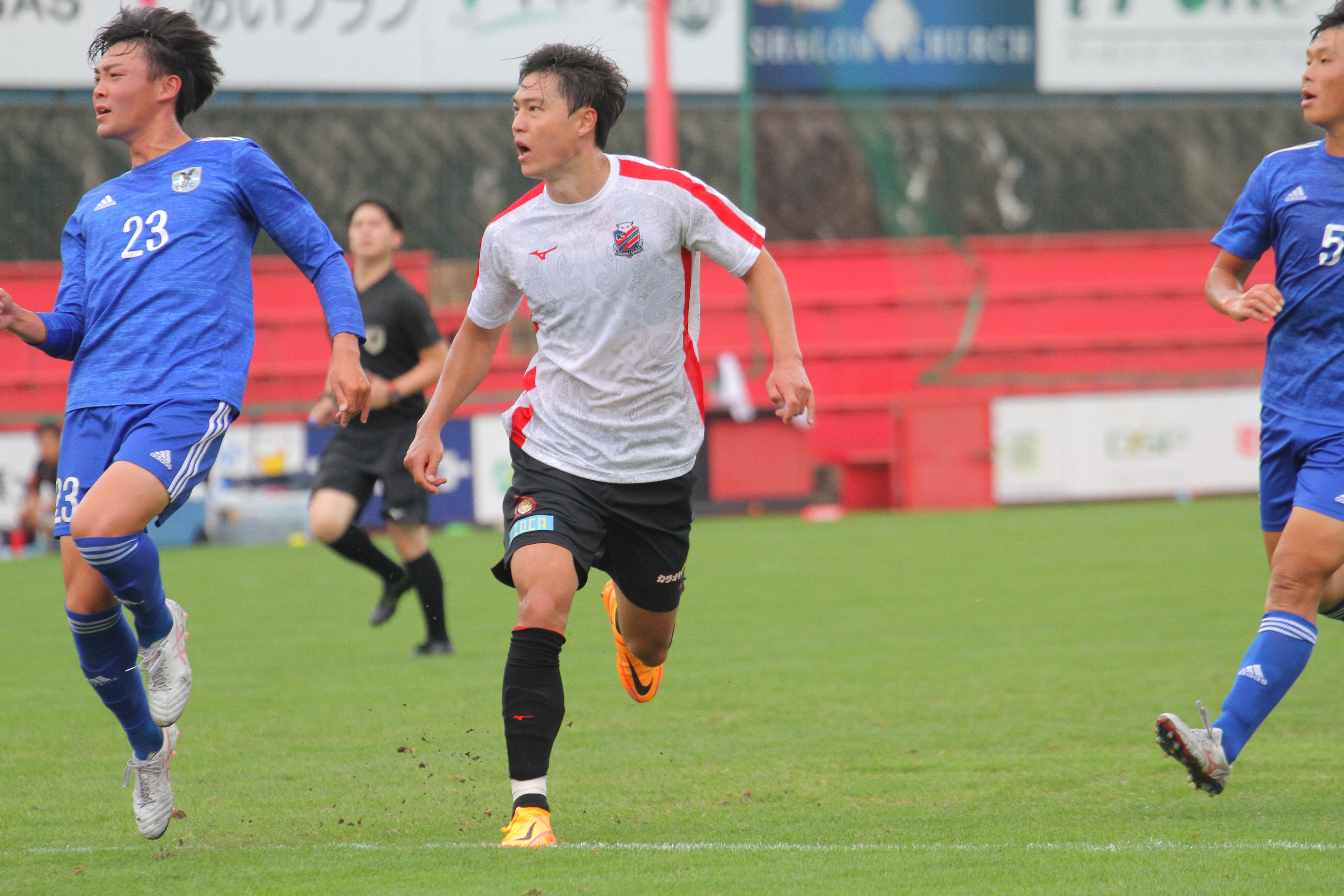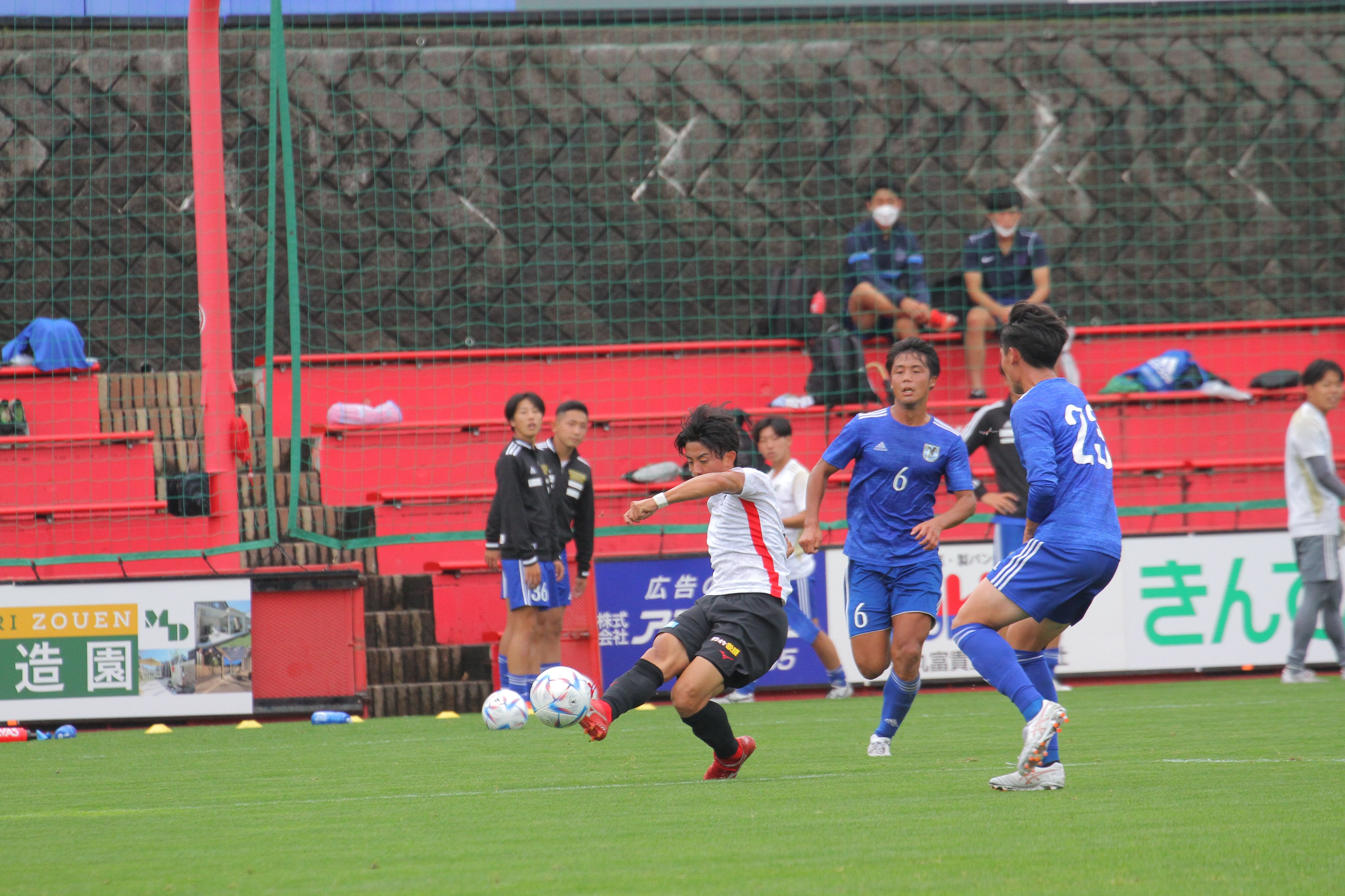 ・後半ロスタイムに青木がミドルシュートを決めて逆転した