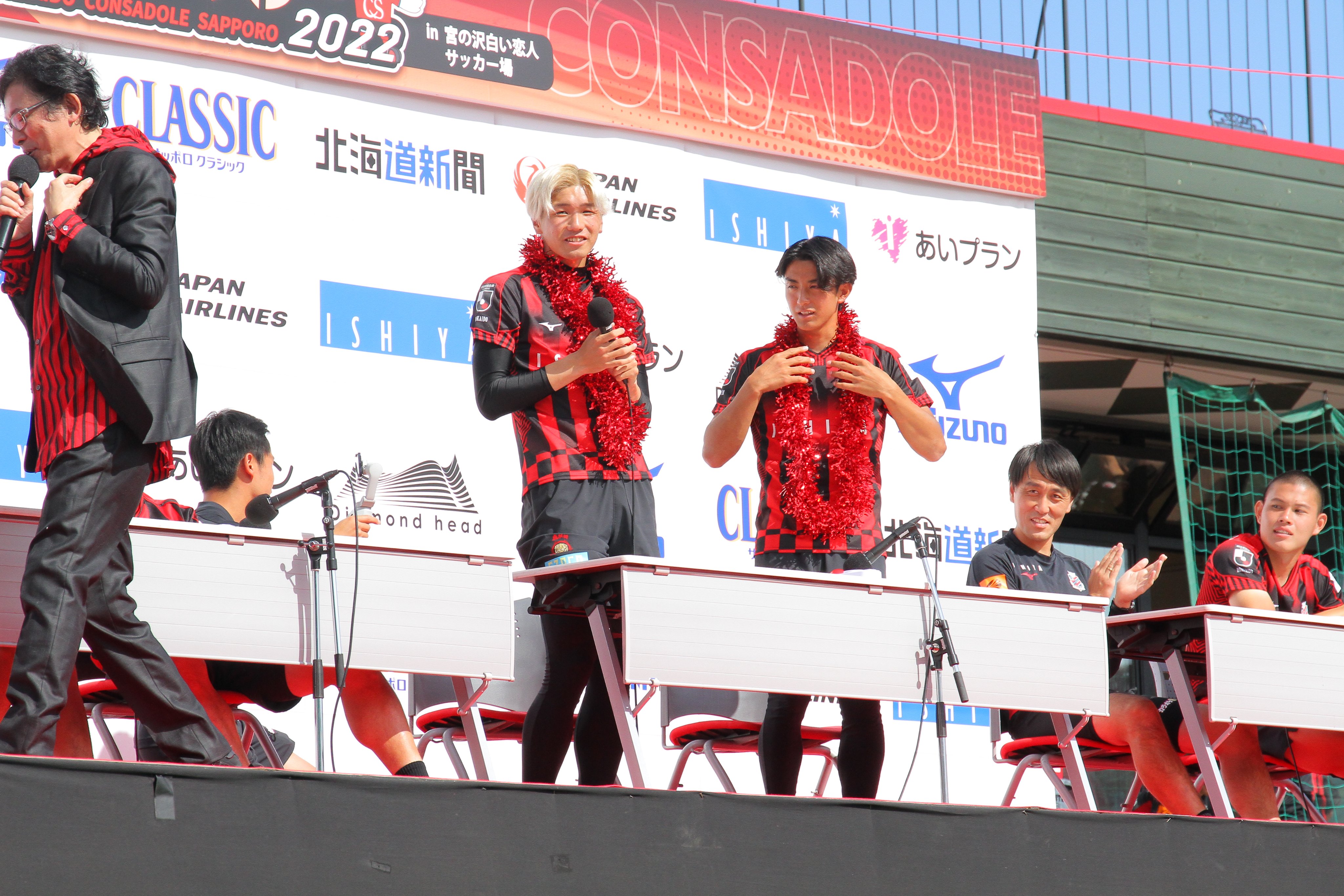 おはようございます。 今日はオフです。 チームの皆さまは、昨日の精神的な疲労を癒してください。 ルヴァン杯準決勝の第2戦は、浦和0-4C大阪、広島0-0福岡。 この結果、C大阪と広島が勝ち上がり決勝へ。 決勝戦は10月22日国立で。 朝刊コンサ記事からです。 ◆見出し ★<GK具、来季復帰><深井が右膝手術><オンラインゲーム運営会社と契約> <残留へ熱いエール><コンサ・サポーターズデー> ■ソンユン復帰記事より ・三上GMは25日、2020年に退団したGK具聖潤が10月上旬にも合流、来季の公式戦から 復帰すると明らかにした ・同日に開かれたファン交流イベント「サポーターズデー」において、ファン向けのあいさつで述べた ・イベント後に取材に応じ 三上GM 「(現在、正位置の)菅野と同様に、具聖潤はキーパーでありながら勝ち点3に寄与できる 素晴らしい選手。われわれが目指すACL出場に向けても大きな力になりえる」 ・と、期待を示した ・具聖潤は9月に除隊、大邱FCと双方合意の上で契約解除していて去就が注目されていた ■深井記事に関しては、既に公表されている内容だけなので、ここではスルーします ■ゲーム会社と契約記事より ・札幌の運営会社コンサドーレは25日、無料オンラインゲーム運営の「レオファン リミテッド」 (英領ジブラルタル)とオフイシャルトップパートナー契約を結んだと発表した *なお、この件に関してはコンサドーレ公式HPにリリースが出ています。 貼っておきます。 https://www.consadole-sapporo.jp/news/2022/09/7945/ ■サポーターズデー ・ファン交流イベント「サポーターズデー」が25日、白い恋人サッカー場で開かれた ・新型コロナウイルス感染拡大の影響で開催は3年ぶり ・延べ約3500人のサポーターが集まり、J1残留に向けてチームに熱いエールを送った ・イベントでは、練習用の壁の後ろに立つ「フリーキック壁体験」や、選手が行う体幹トレーニングの 体験会、サイン会などが行われ、サポーターはピッチ上で選手と交流を深めた ミシャ 「これだけのサポーターが応援してくれるクラブはJ1にいないといけない。 皆さんと共に必ず残留を成し遂げたい」 ・と、ファンの前で話した などです。