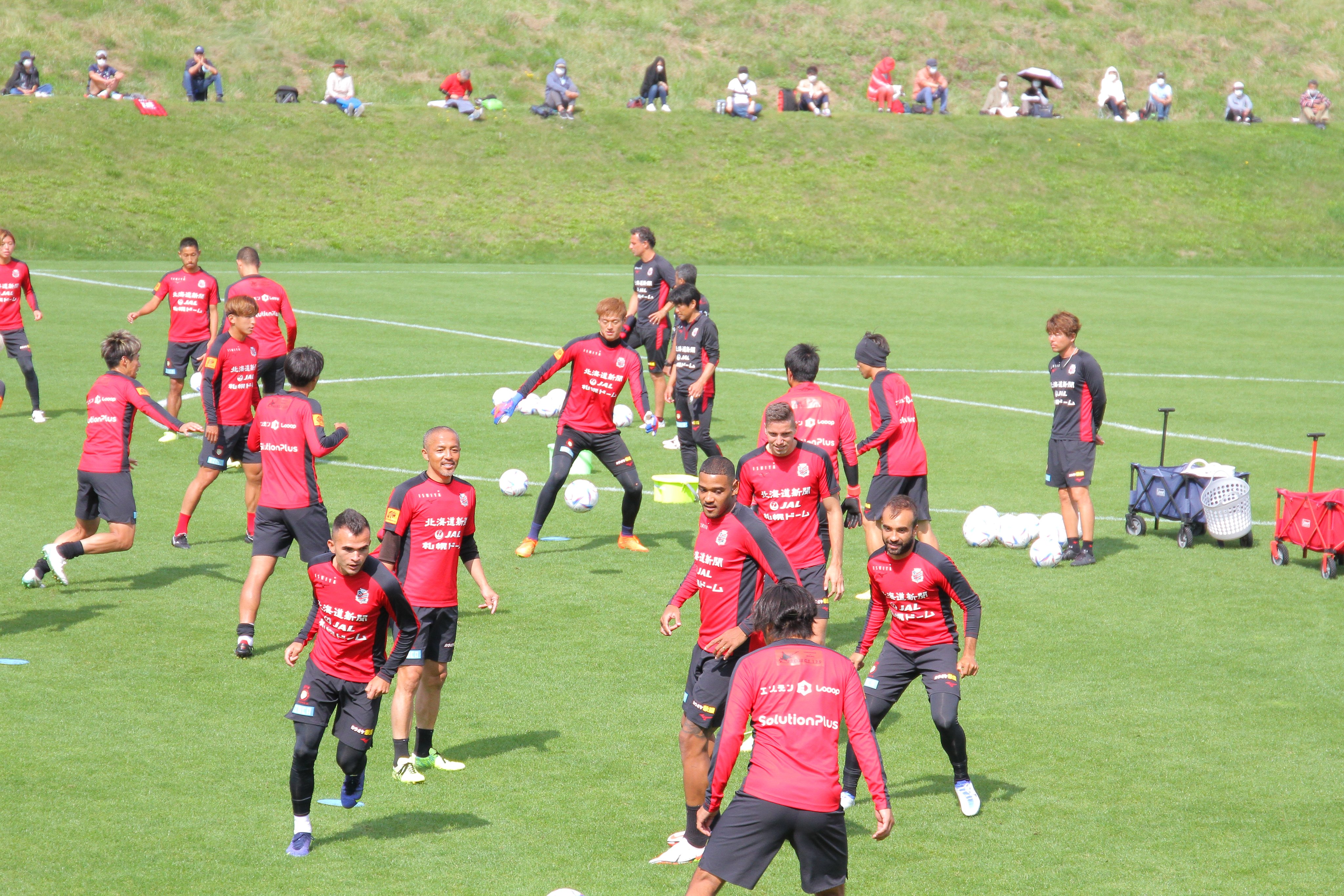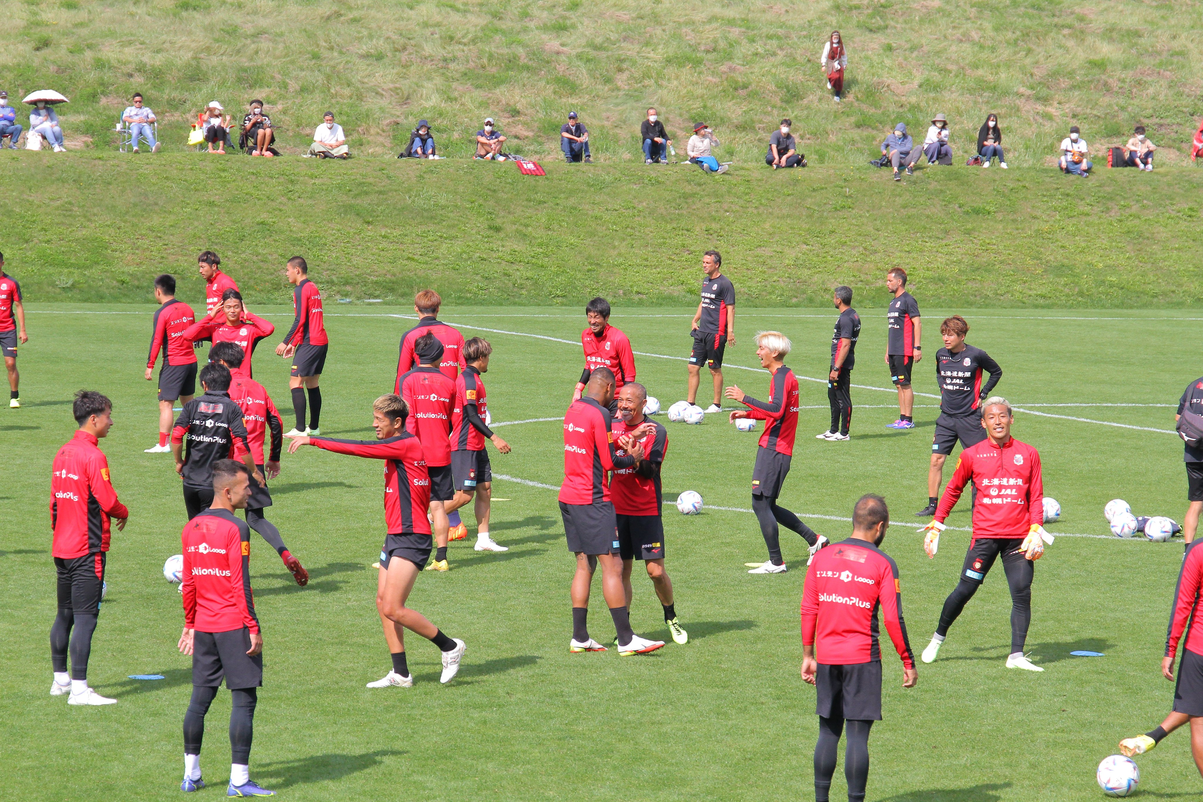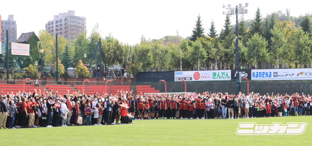 Twitterで公開してます。 ツイートと動画です。 先日の『2022サポーターズデー in 宮の沢白い恋人サッカー場』の最後にご来場の皆様全員でのドローンによる記念撮影の映像をお届けします📸 動画は38秒です。 https://twitter.com/i/status/1574647729313132544 【追記】 2件目も公開されました。 ドローン撮影の終盤には 深井一希 選手のユニフォーム8⃣を掲げて撮影を行いました📸 みんなで深井選手がピッチに戻ってくるのを待っています🟥⬛️ 動画は17秒です。 https://twitter.com/i/status/1574663381432221697