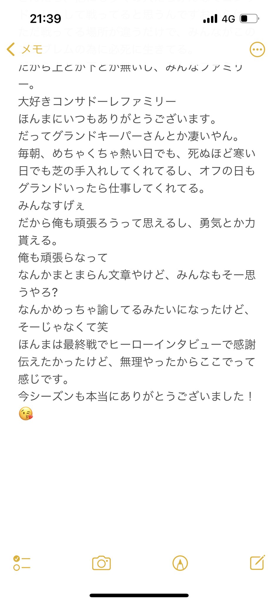 感謝の弁のツイートです。 今年も熱い声援ありがとうございました! 試合会場に足を運び応援してくださったサポーターの皆さん、テレビの前で応援してくださったサポーター皆さん、その皆さんの力があったからこそ来年もJ1で闘えると思ってます! 今シーズンも北海道コンサドーレ札幌に関わる皆さん、本当にお疲れ様でした! 添付写真2枚です。 https://pbs.twimg.com/media/FhGTwVnVsAAleKh?format=jpg&name=medium https://pbs.twimg.com/media/FhGTwVsVQAAob4D?format=jpg&name=medium
