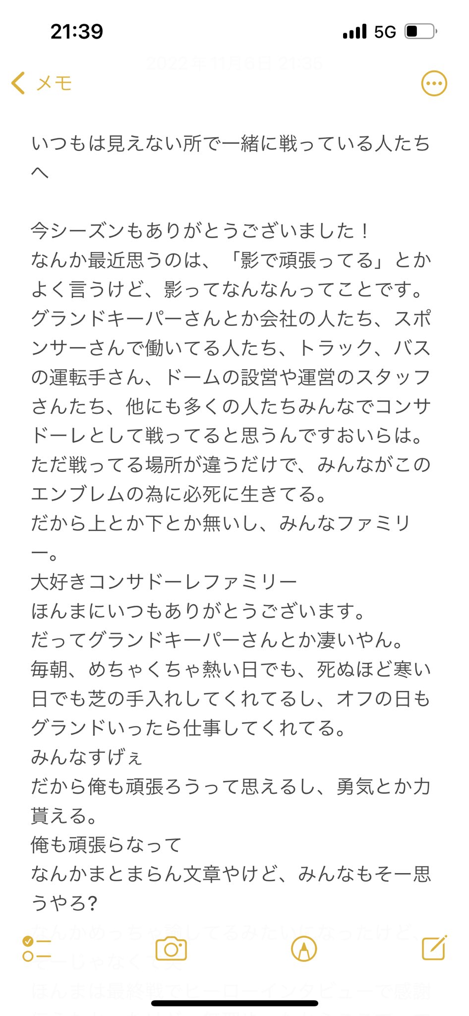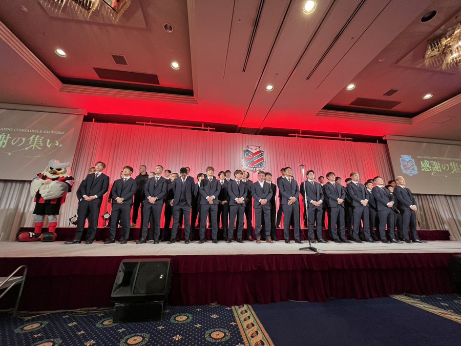 公式さんがツイートしてます。 ツイートです。 2022北海道コンサドーレ札幌『感謝の集い』がスタートしました🔴⚫️ 選手・スタッフがステージに登場✨ 添付写真です。 https://pbs.twimg.com/media/Fg813MSakAAAn5D?format=jpg&name=900x900 リリースが出てませんから、サポへの『感謝の集い』ではないですね。 パートナー様向けでしょうか。