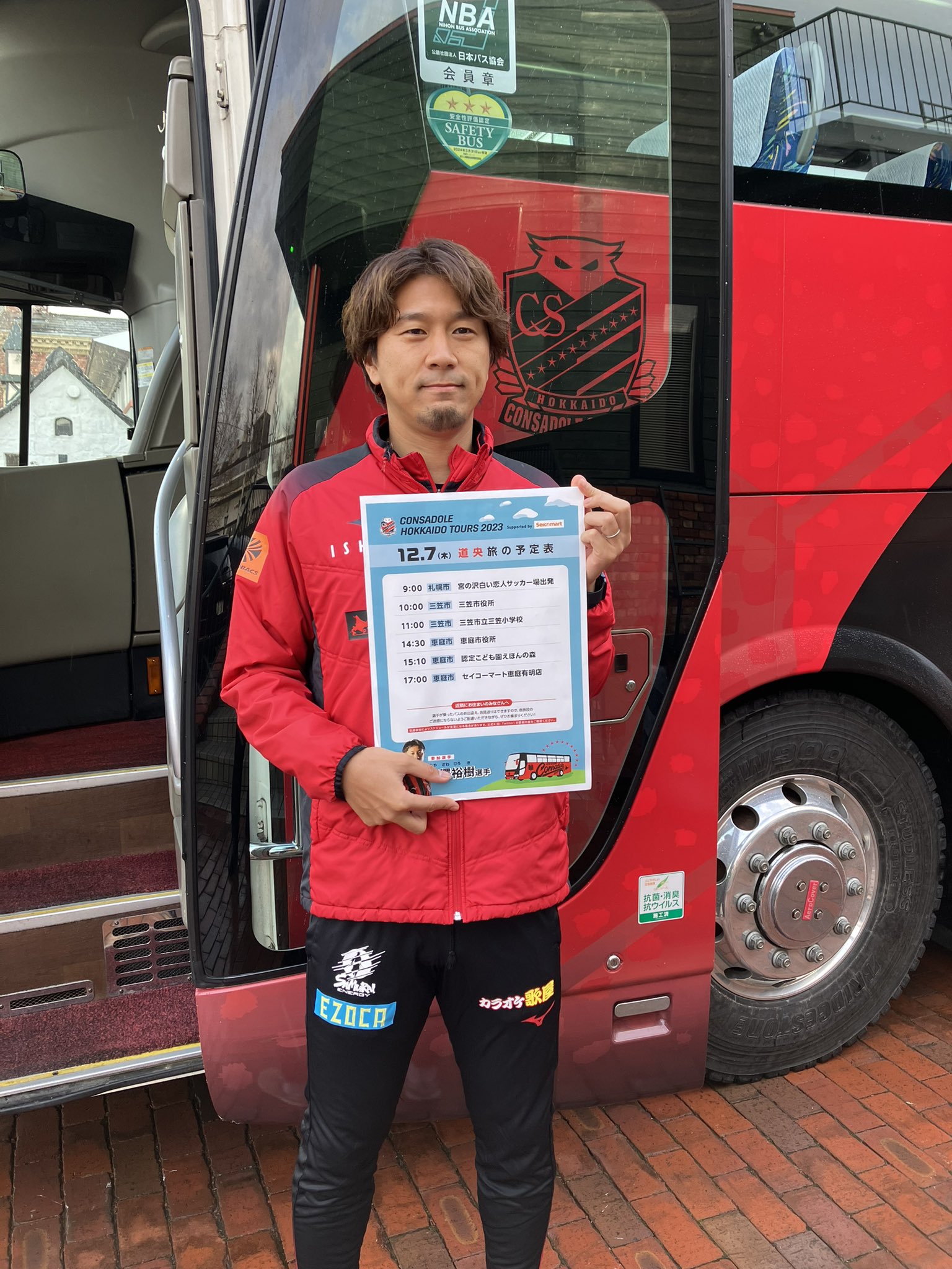 HBCが密着取材をしているようです。 <HBC コンサドーレ取材班>さんのポストです。 きょうから北海道内を巡る CONSADOLE HOKKAIDO TOURS supported by seicomartスタート!⚽️ 初日は 菅野孝憲 選手が 余市町、仁木町を巡ります🚌 出発時には な、なんと! 小野伸二 さんが登場!! 「気をつけてね!」と 菅野選手をお見送り🖐️ https://pbs.twimg.com/media/GAn9ANeaYAAkUpz?format=jpg&name=small そして仁木町役場では シャインマスカットを贈呈!🍇 菅野選手も笑顔に輝き✨ https://pbs.twimg.com/media/GAo6OwJbEAAL6zy?format=jpg&name=small 菅野孝憲選手が 仁木町 の小学生と PK対決!軍配はどちらに…?⚽️ 動画です。 https://twitter.com/i/status/1732257129179070521 サポーター必見👀 菅野選手の超レア⁉︎な リフティングも特別にお見せします!⚽️ 動画です。 https://twitter.com/i/status/1732266372787544569