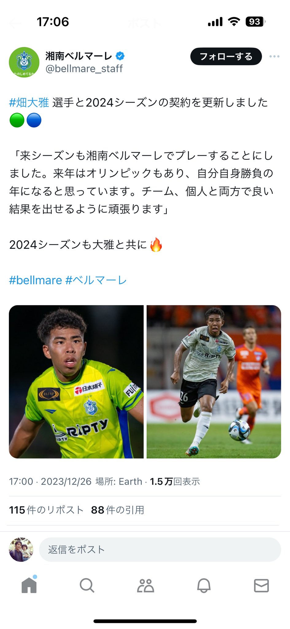 アシシさんのポストです。 スポニチが「C大阪畑大雅獲得決定的」と報じた4日後、湘南公式が契約更新を発表。これは田中駿汰の移籍もなくなるか? これを添付してます。 https://pbs.twimg.com/media/GCQoMNdaYAAN6WA?format=jpg&name=large https://pbs.twimg.com/media/GCQoMNYawAA0aRu?format=jpg&name=large どうなるんだろう? 凄い、気になるんですが。 アシシさんがポストするくらいだから、信頼度は高いぞ。
