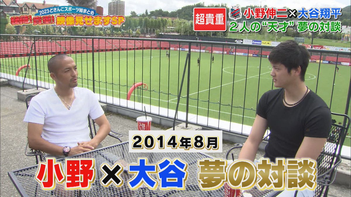 特番は、<kickoff_hokkaido>さんがポストしていたSTVの<⚽️2023どさんこスポーツ総まとめ>。 この特番では道内関係の諸々のスポーツの2023年総まとめ、でした。 コンサ関係では小野伸二の引退模様メインで。 で、その小野伸二の関係で2014年の大谷翔平との対談模様も。 その部分を写真5枚で紹介します。 ★タイトル★大谷翔平は、まだ20歳★対談は宮の沢のクラブハウス屋上で★取材陣の要望でしょうか、ピッチでパス交換も!★貴重なツーショット簡単レポでした。