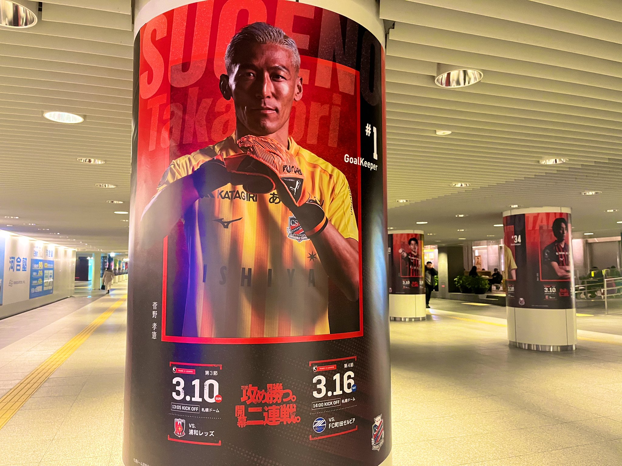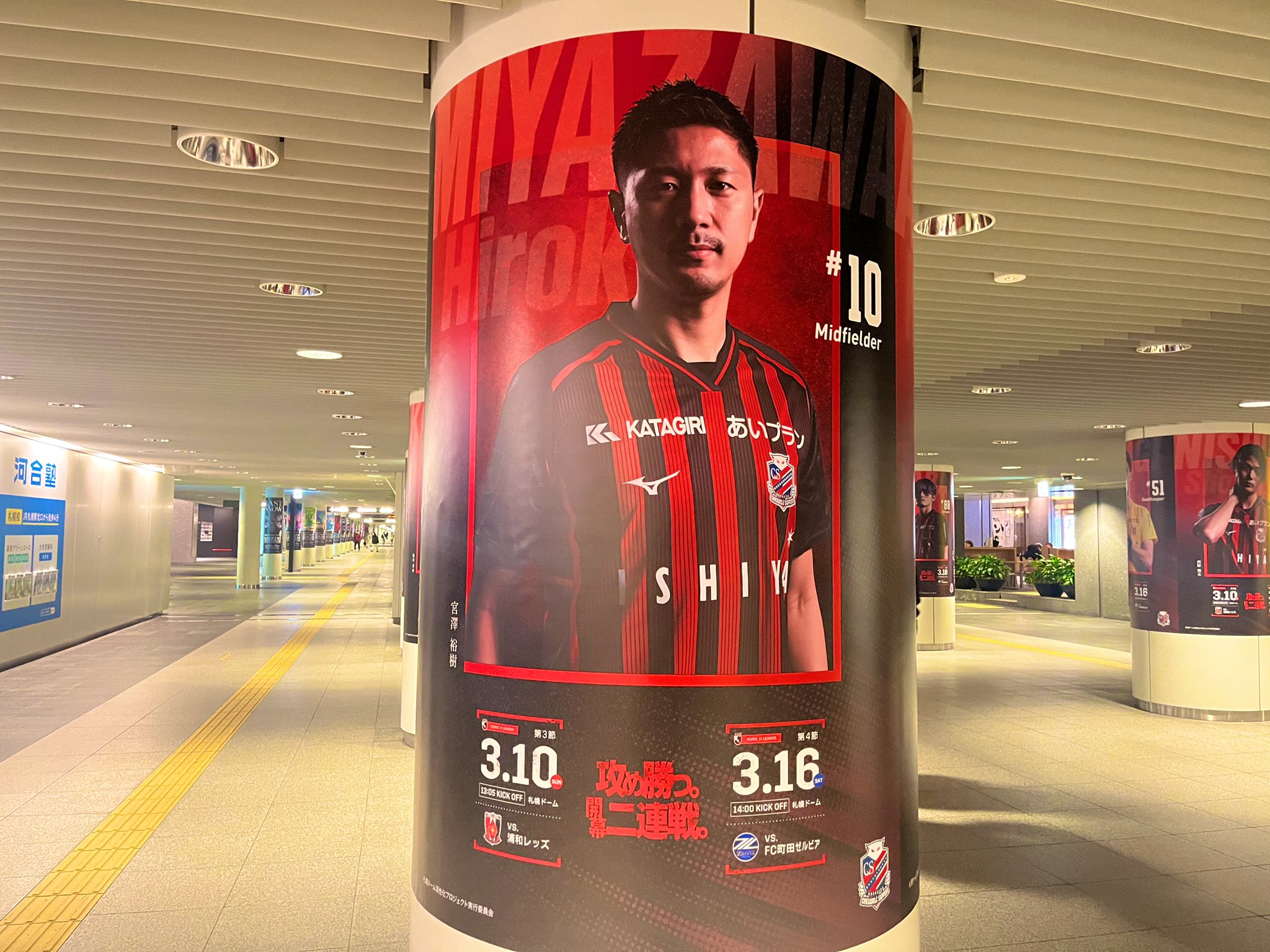 公式さんのポストです。 🟥攻め勝つ。開幕二連戦。⬛️ ホーム開幕に向け、札幌市の協力のもと札幌駅前通地下広場チ・カ・ホの柱巻きが今年もコンサドーレ仕様になりました🚩 📍札幌駅前通地下歩行空間(※札幌駅側から入ってすぐ) 📅掲出期間:3月17日(日)まで ホーム開幕二連戦、最高の雰囲気で選手達を迎えましょう🔥🔥 写真4枚。 https://pbs.twimg.com/media/GHx44ZHaoAAoTL2?format=jpg&name=large https://pbs.twimg.com/media/GHx44ZGa4AAXmaW?format=jpg&name=large https://pbs.twimg.com/media/GHx44ZFaUAAYoXq?format=jpg&name=large https://pbs.twimg.com/media/GHx44ZJbsAAarPO?format=jpg&name=large