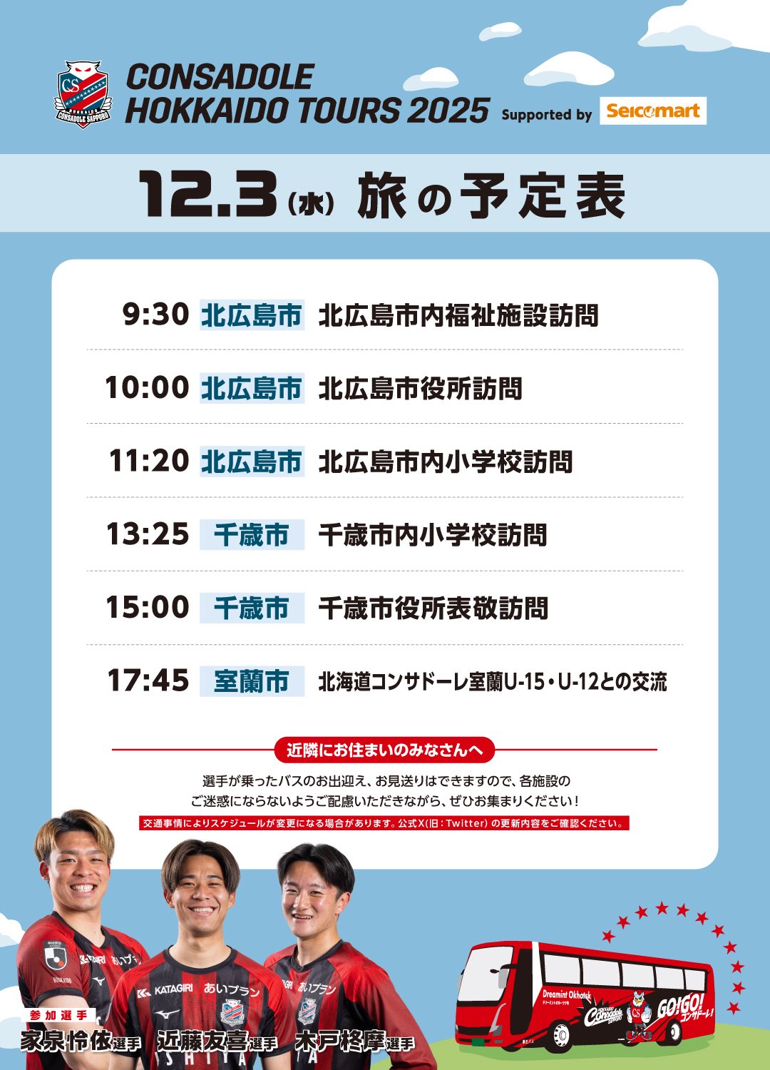 CONSADOLE HOKKAIDO TOURS supported by seicomart 🌈 北広島市・千歳市・室蘭市方面 🚌