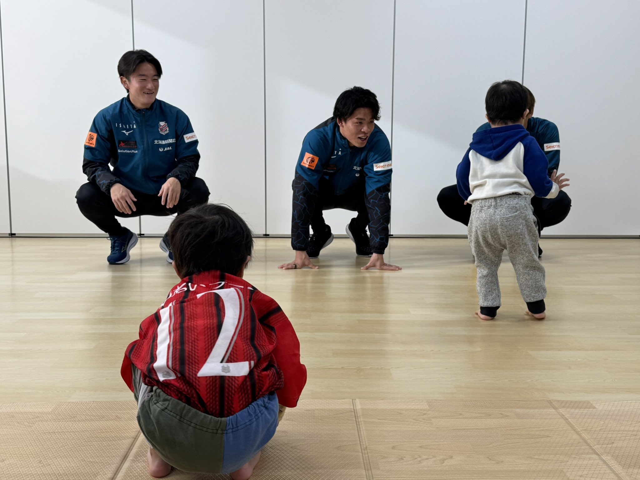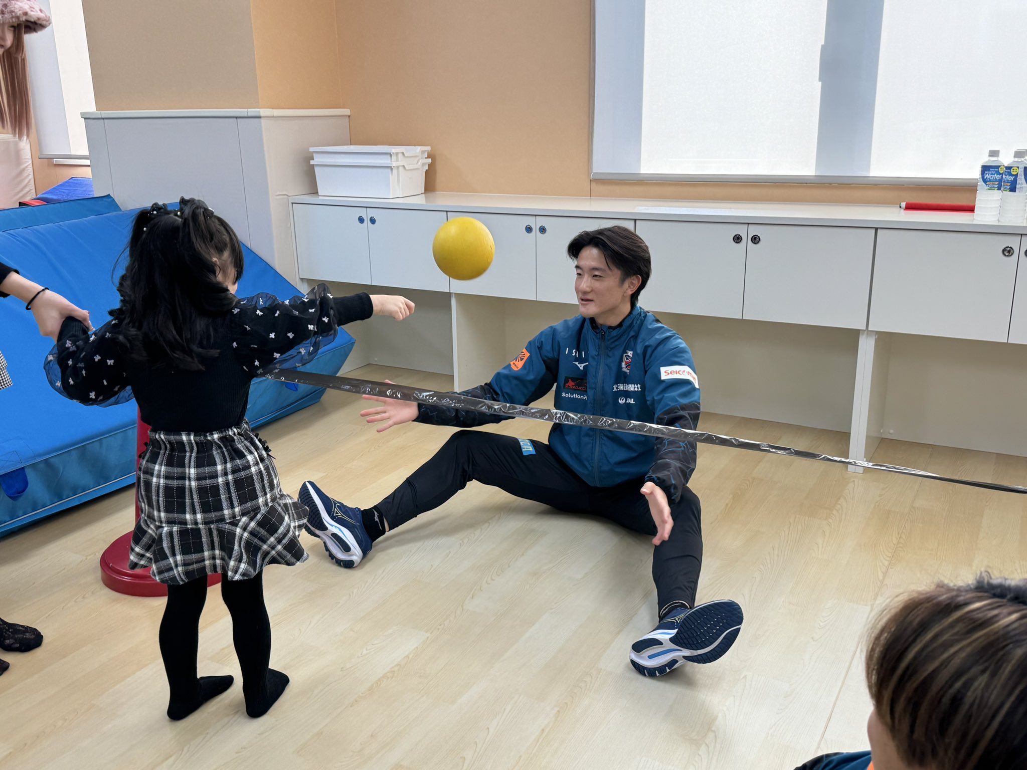 北広島市子ども発達支援センターで #家泉怜依 選手、#近藤友喜 選手、ウインナーが大好きな #木戸柊摩 選手が子どもたちと触れ合いました🤝