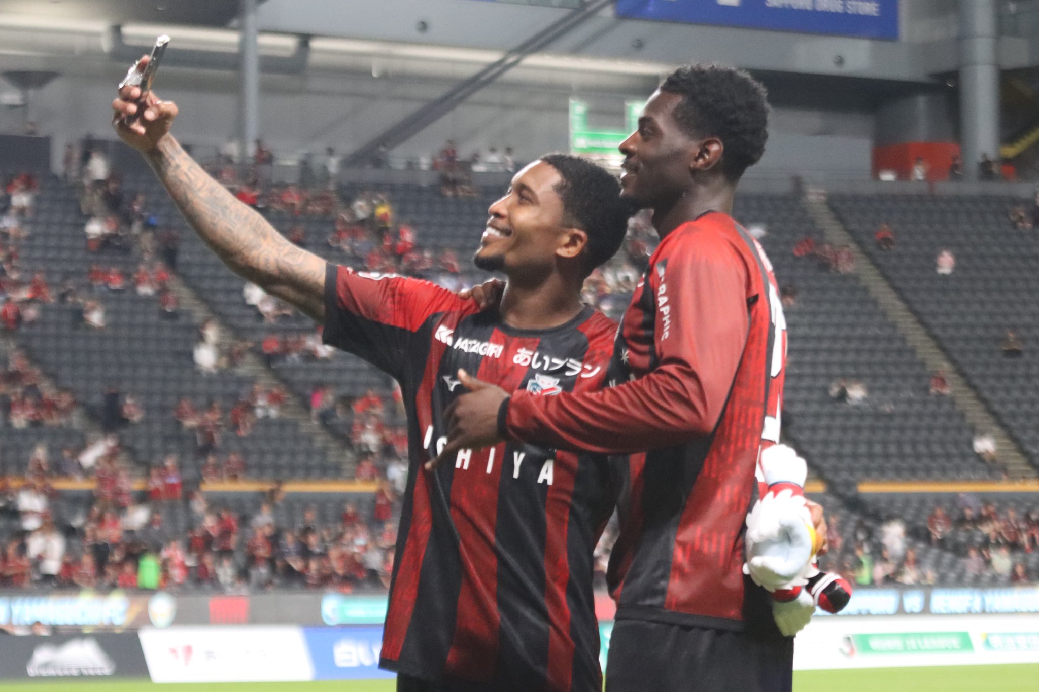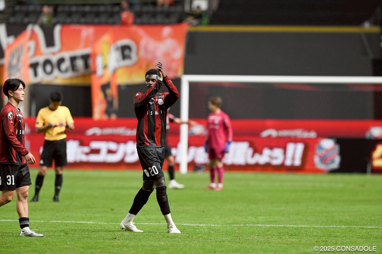「ミナサン、アリガトウゴザイマス!」から始まった #アマドゥバカヨコ 選手のヒーローインタビュー。思わず中島ファラン一生通訳が「Everybody, thank you very much!」と英訳🤭 日本語勉強中で「シドが先生」とのこと。 ちなみに #マリオセルジオ 選手は英語は苦手みたいです。#consadole #出間思努