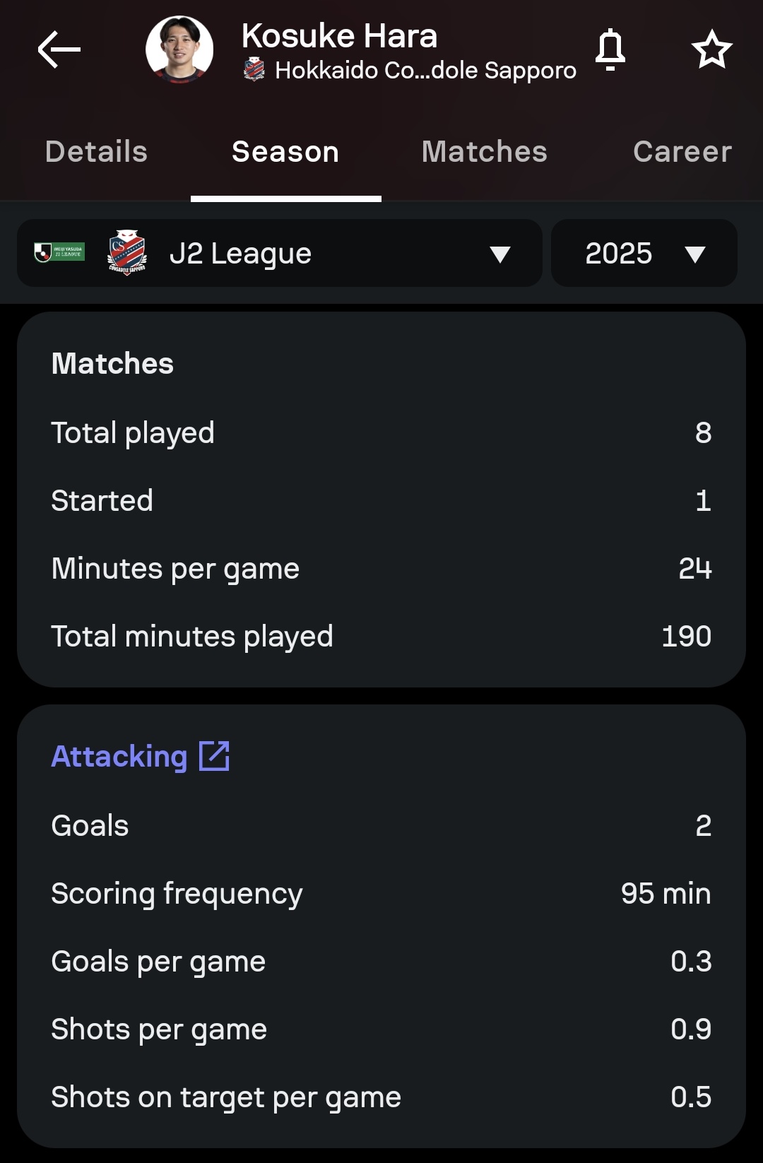 まずはコンサドーレ札幌の原康介選手( #原康介 )から。19歳のこのミッドフィルダーは、今のところ出場時間は多くありませんが、コンサドーレの今シーズンにおける稀有なハイライトの一人です。非常に才能がありながら過小評価されている選手です。順調に成長しています。 🔥