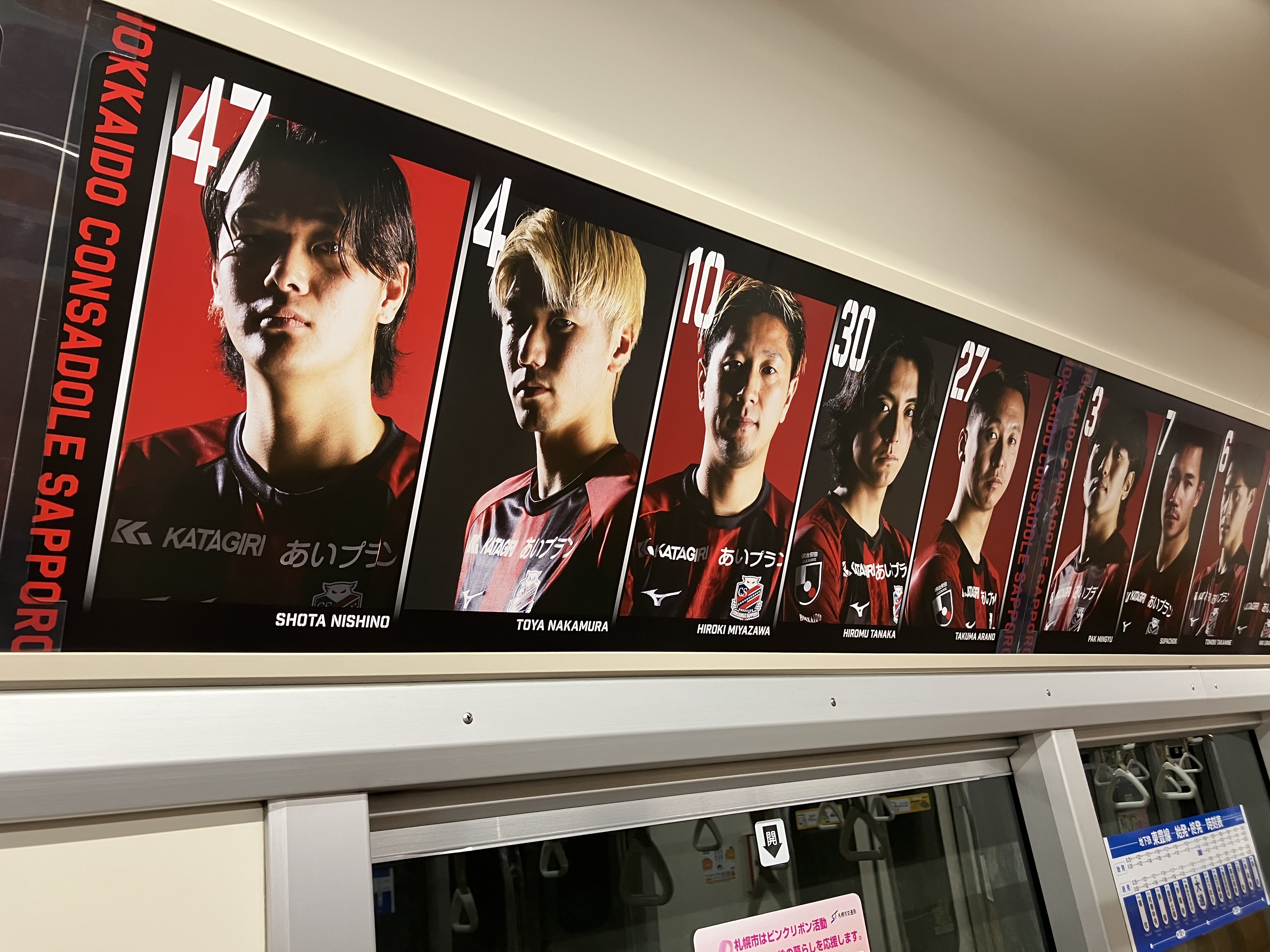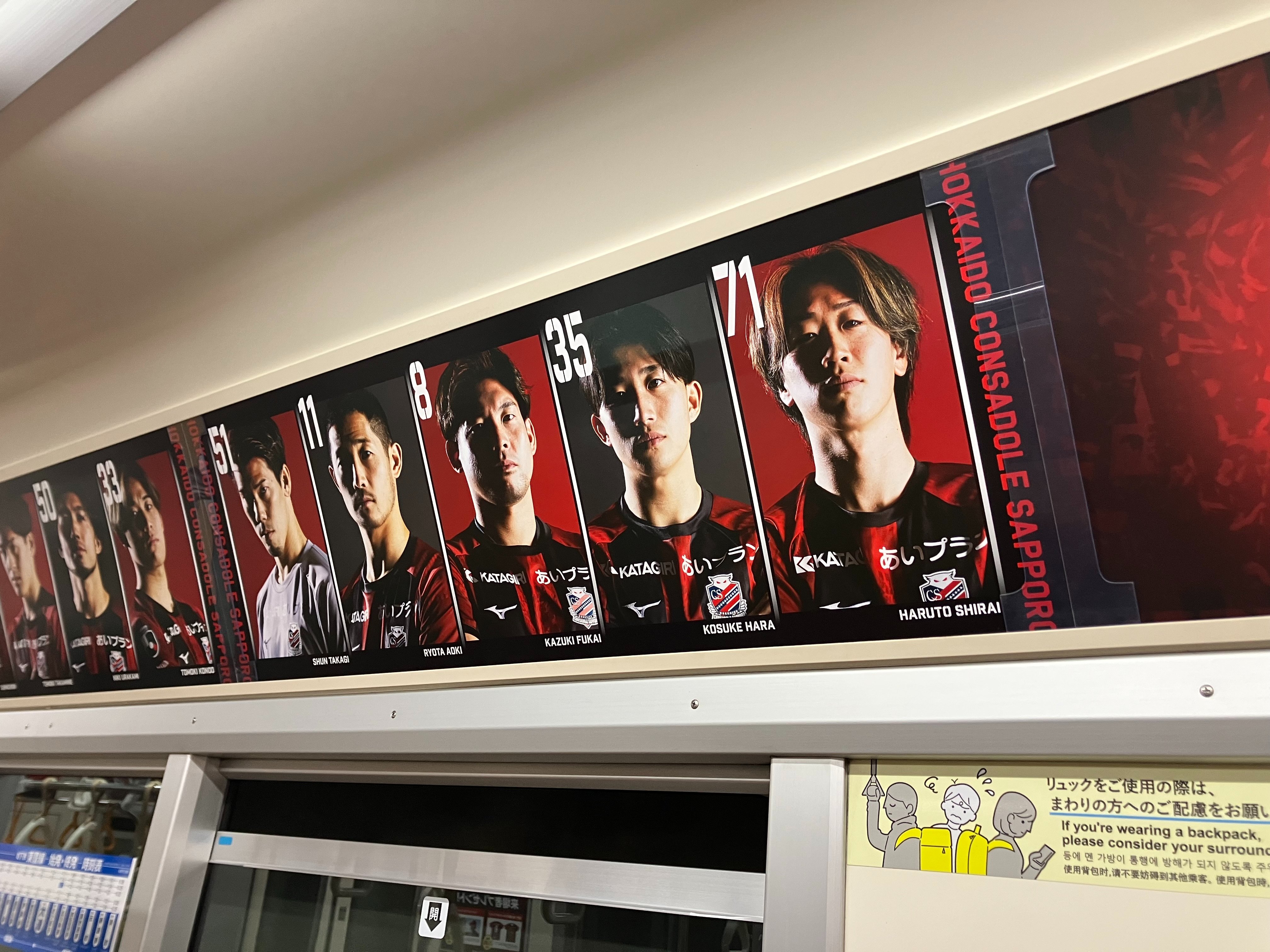 \ 本日から✨/ 地下鉄東豊線に #2025最終戦 の広告が登場しました☺️ご乗車の際は、まわりのお客様へご配慮のうえ、ぜひ写真を撮ってポストしてください📸✨広告は11/30まで掲出中! 🔥11/29(土)愛媛戦はシーズン最終戦! 来場先着 21,000名様に豪華Wプレゼント🎁 ⚽ 深井一希 現役ラストマッチTシャツ ⚽リバーシブルハット