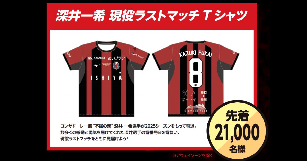 来場先着21000名様に #深井一希 現役ラストマッチTシャツをプレゼント🎁 #consadole #コンサドーレ